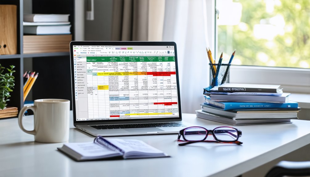 A structured spreadsheet records total loan amounts, rates, federal versus private status, payment dates, and remaining balances, updated monthly.